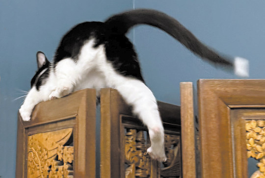 In addition to the problem of hairballs, I can’t stop Shadow from howling each night, somewhere between midnight and 5:30 a.m. Howling can be a product of boredom, which can happen with indoor cats. It can also be caused by a lack of exercise, not enough playtime, loneliness, and possibly from discomfort caused by illness or pain. If your cat is howling or meowing, you should take kitty to be checked by your vet.